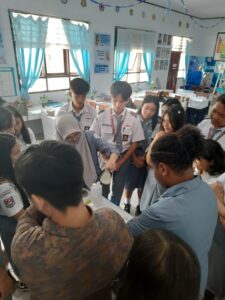 Kegiatan ini bertujuan untuk memberikan pemahaman kepada siswa mengenai potensi limbah daun cengkih yang melimpah di daerah Minahasa agar dapat diolah menjadi produk bernilai tambah. Dalam pelatihan tersebut, tim dosen dan mahasiswa Jurusan Kimia FMIPA UNSRAT membimbing siswa secara langsung mulai dari proses penyulingan sederhana daun cengkih hingga menghasilkan minyak atsiri yang kemudian diformulasikan menjadi produk obat kumur alami.